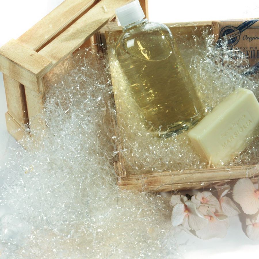Paglietta trasparente / bianca adatta al confezionamento di cesti o scatole da regalo. Disponibile in confezioni da 100, 200 gr, da 1 e da 4,5 kg.