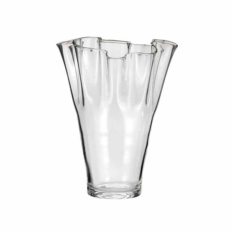 Vasi e centrotavola fazzoletto in vetro trasparente disponibile in diversi diametri e altezze. Adatti ad ogni esigenza.