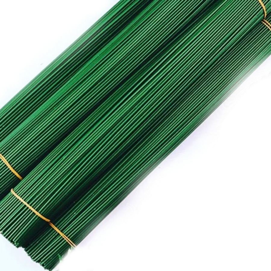 Barra di filo metallizzato colore verde, con una sezione trasversale rotonda. Il materiale di cui è composto non cambia il suo colore sotto l’influenza del tempo. Il filo è abbastanza morbido da essere piegato, attorcigliato e modellato con le mani, senza l’uso di strumenti e senza timore di romperlo, ma se necessario, può essere facilmente tagliato con forbici o pinze. In floristica è un materiale molto popolare, usato per sostenere fiori freschi e come gambo per quelli artificiali. È usato per fare composizioni floreali usando bacche decorative, foglie e fiori.
