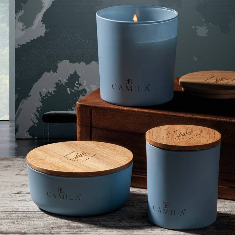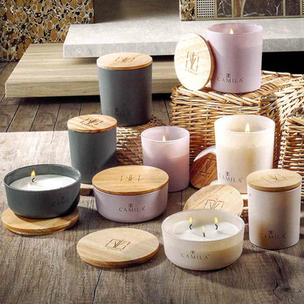Le candele CAMILA si presentano in un elegante portacandele di vetro o velluto con coperchio, creazioni frutto della tradizione artigiana che la ditta porta avanti con orgoglio, esempio del vero prodotto Made in Italy.