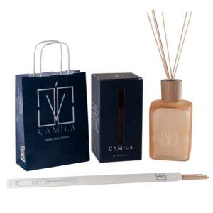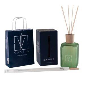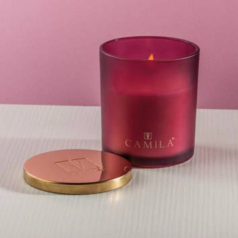 Le candele CAMILA si presentano in un elegante portacandele di vetro o velluto con coperchio, creazioni frutto della tradizione artigiana che la ditta porta avanti con orgoglio, esempio del vero prodotto Made in Italy.
